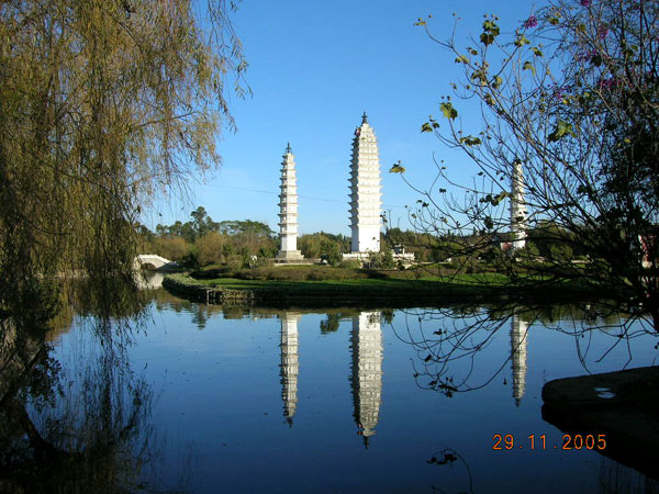 按实物比例缩小4倍建造的大理"崇圣寺三塔",后来去了实地看过,整体感觉还是这个更好,呵呵.