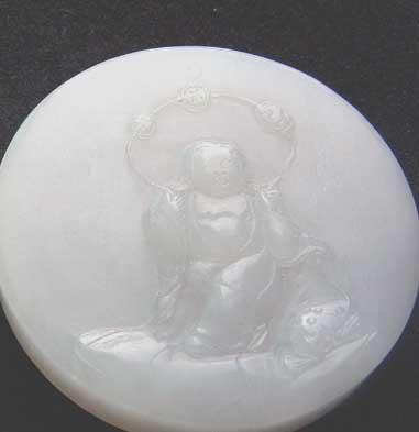 (什么叫油脂光泽请你到趟菜场去看看猪肉的膘,那光泽就是)而青海料就是有透的感觉没有那种浑厚凝脂般的感觉。所以大家利用一看、二摸、三看光泽,即使你是菜鸟也可掌握一二了。哦,对了还有一种新疆产的"马蹄筋"的DD,很白哦,肉也细其也是一种石英类的玉石,硬度有7。小刀划不动,但有个弱点没有油性,很干。好了,基本能够识别和田玉了,那下一步,我们应该看看和田玉的档次了。历朝历代以白玉为佳,所以近年来白的俄料、青海料充斥市场。但是和田玉在整个矿区白玉的所占比例是非常小的,所以价格贵,尤其是羊脂玉是特别的珍贵。除羊脂玉和田白玉中还分雪花白、鱼肚白、梨花白、象牙白等13种。从材料上讲又以子玉最贵,和田子玉有艳丽的皮色为许多买家、藏家所喜爱有秋梨、芦花、枣红、黑皮等珍贵的皮色品种,工匠利用皮色做俏雕自然成趣 。