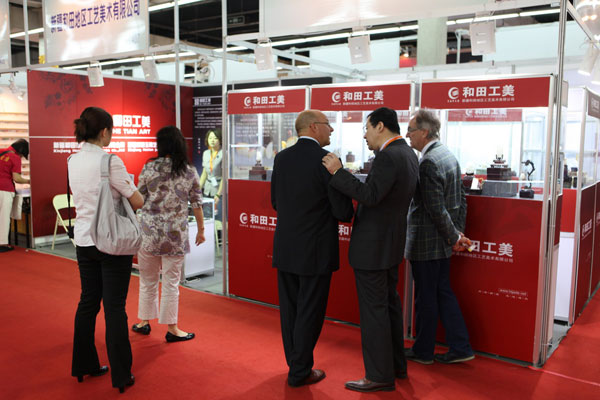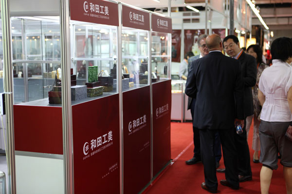 展会现场和田工美的精美玉雕作品受到国际友人的高度赞扬此主题相关图片如下: