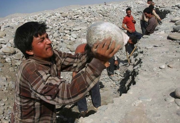 玉石在这里被挖玉人从地底掘出;商人们将之贩运到遥远的南方,在那里切割,打磨与雕琢;再流向北京上海这样的现代都市。数千年以来玉石的流转保持着这一路线,更加恒久不变的则是在原产地挖玉人中反复上演的好运与绝望,这个地区深陷疯狂的财富梦想与环境恶化的现实之中,人们使用着几十个世纪以来都没有变化的寻宝技术,疯狂的找寻着自己的梦想。(南方周末:翁洹 摄 / 陈江 文)