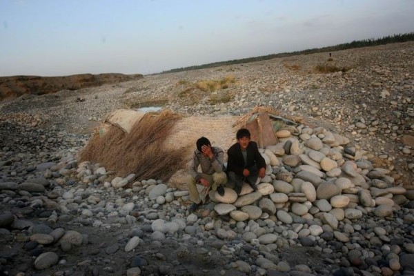 在一个他曾经挖掘了半个月却没有任何收获的土坑里,哈拜尔用帆布和木架搭起了一个简易帐篷,他就住在里面。每一天,他都在这个帐篷附近开掘新的土坑,寻找着新的玉石。对他来说,这是种古老的赌局,赢了,他可能会挖到价值几十元直至几千万的宝贝,而输了,他输3块钱——一天三个馕饼的价钱。