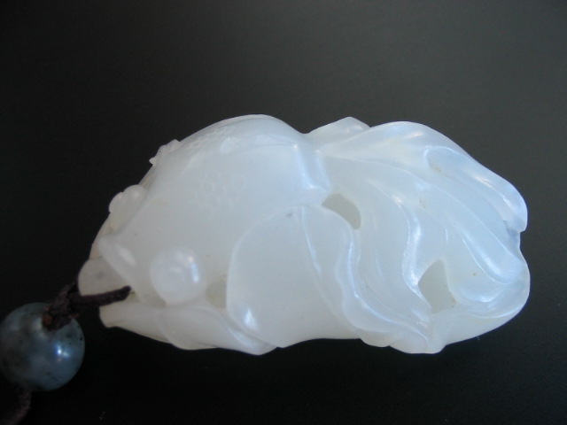 我的第一个白玉小玩意 不完美 有黑点 可这并不妨碍我爱她 嘎嘎 从她上架到我购入 费时4分钟 嘎嘎 编号1259(要爱我久)可是我究竟能爱她多久呢