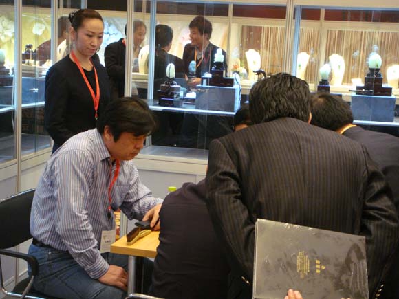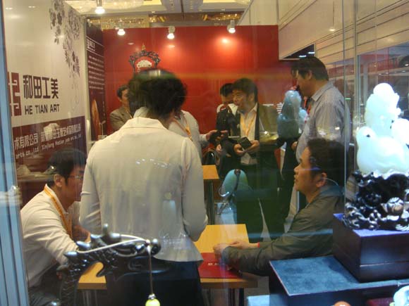 4月8日杭州高端珠宝展盛大开幕,和田工美参展精美和田玉作品共上百件。新老客户和网友纷纷前来参观、欣赏、交流,各个精美原石及和田玉作品令来者大饱眼福,赞不绝口。