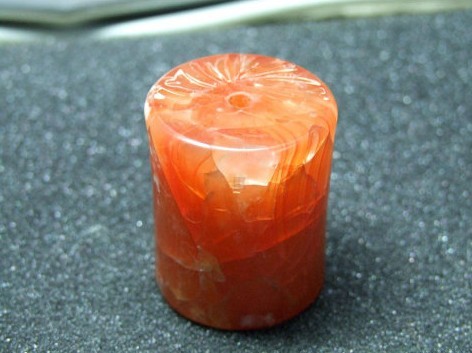 2:玉髓它是石英的一种变种。玉髓与玛瑙之间有着衣钵的关系,由于新疆也出红玉髓,往往会被人误称为红玉,市场上有本新疆红玉的书,这本书不知害了多少人。作为探讨红玉问题可以展开,作为引导消费这是极不恰当的。这里要注意玉髓是石英的变种,有石英成分但不是真正意义的石英。这里主要介绍的是红玉髓,请看下图;