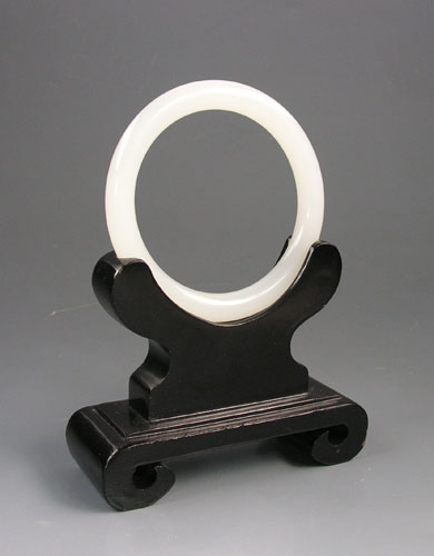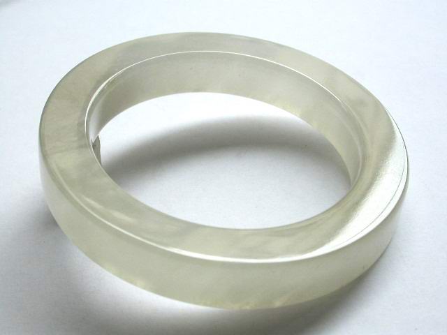 这种镯子极为经典,流传已久,讲究精圆厚条,庄重正气。镯子大小要正好,不能像现在的镯子那样卡在手腕上。镯子适合各种玉种,但是尽量要有色,特别除外无色玻璃种,因为镯子式样已经正统,一点颜色也没有会像玻璃的,另,厚条镯也不显玻璃种的好透明度。