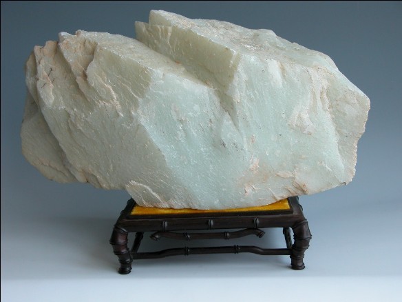 C、块度:子料都是块状。块度一般比较小,“如盘、如斗、如拳、如栗”,份量一般在几公斤左右,最小者仅小指一般。上百斤的,则属罕见。