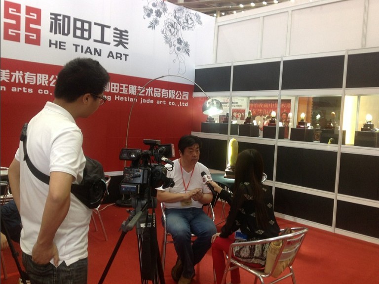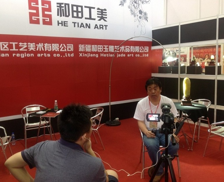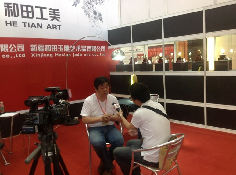 和田工美董事长程建中在文博会场接受了深圳电视台财经频道等记者就和田玉文化、相关知识等问题的采访。程总的回答令记者们对和田玉的艺术魅力、发展及前景有了深切的了解和认识。