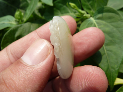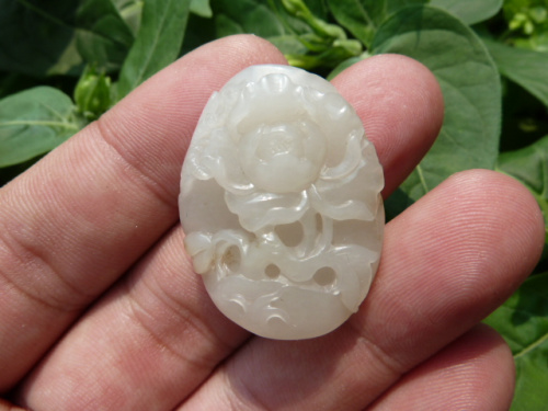 宝贝介绍:和田玉籽料花开富贵挂件,独籽雕刻,白度1.5级偏灰(参考烟标图),肉质细腻致密温润。很精致的一款小挂件。