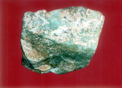 而切是很普通的青白玉.虽然是玉,但糟头太大,利用率不高.加之块头太小,一般这种材料块度应该在20公斤以上才好使用.你这块山料,是出自新疆的且末县.虽说可以归到和田玉的范畴,却是比较低的等级.(希望我的答复不要让你太失望)