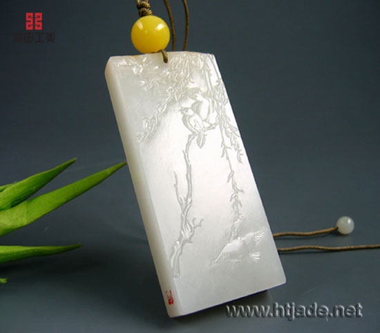 玉牌子是一个独立的玉雕艺术门类,是随身携带的玉雕佩饰品之一。因为它规格方正,大小适中,可佩戴于胸前又可佩挂于腰间,无论是欣赏还是把玩都十分合适,男女皆宜,所以深受人们的喜爱。