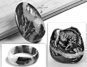 至于冒充青花的材质,则主要是一些石英岩质地的名为东陵石之类。因为看上去也黑白分明,并且透明度高于和田青花,有翡翠情结的爱玉者很容易受骗上当。一位朋友就遇上一件这样的事:他的一位好友的好友捎信给他,说是新到了几十只顶级青花,让他先挑。开价也很高,单只价格过万。朋友很兴奋,说是要多买几只作为投资,只是他对玉一点也不了解,便托我给他掌掌眼。去到卖家的别墅里一看,哪是什么顶级青花,分明就是新近冒出来的阿克苏东陵石手镯,市场价顶多也就一二百元一只。看朋友的表情视乎有些怀疑,我顺手在地上捡了一截同样材质的手镯碎料,让他自己送去鉴定。拿到鉴定结果他才彻底死心—证书上清清楚楚地写着:石英岩玉。
