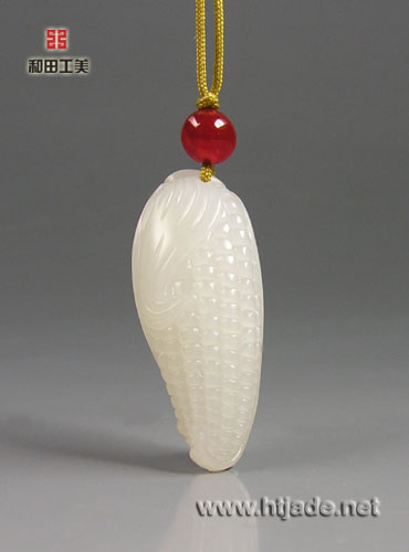 和田玉籽料白玉挂件亭亭玉立。以新疆和田玉籽料为材。玉质缜密细腻,脂性温厚,白度好,色白如雪。工艺师以圆雕立雕等手法琢一玉米,玉米粒颗颗清晰饱满,逼真写实,叶片硕大舒张,脉理清晰,包裹在玉米上,蕴涵“丰收在即,五谷丰登”之意,佩带悦目。