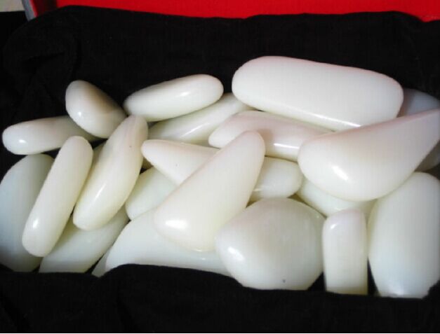 1、石英岩类玉石:色白、质地较细,外观很像白玉。过去所谓的“京白玉”,就是一种细粒石英岩,是地矿部门评价的“油石”矿,颗粒很细,但不能称为白玉,石英岩类的玉石硬度比和田白玉高,因此比白玉显出更强的玻璃光泽,在没有仪器检测的情况下,可以据此分辩。