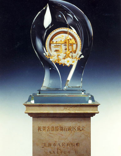 1996年上海市政府为香港回归赠送的珍贵礼物《浦江庆归》中的21朵白玉兰花,就是由这批玉料雕刻而成。1996年春,上海市机关事务管理局通过上海玉雕厂找到我,说明赠送香港回归的礼品紫荆花篮中要有21朵羊脂玉白玉兰花。白玉兰是上海市的市花,“21朵”象征着团结奋进迈向21世纪。对于这样一件饱含深情的赠品,我什么要求也没提,拿出了建国以来仅有的一批最好的“95于田料”,那正是好钢用在刀刃上,而且一拿就是70多公斤。这也是和田工美的骄傲与自豪。纵览各省市区赠送香港回归的礼品,上海的《浦江庆归》是最珍贵最气派的一个,而21朵羊脂玉白玉兰花则成为翘楚中的翘楚。