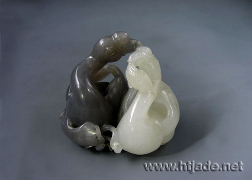 新疆和田玉黑白籽玉摆件 脉脉传情