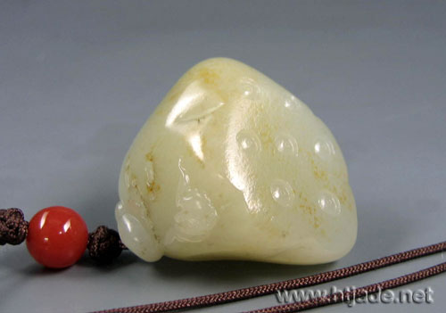 其次,能保持原貌雕刻的独籽,说明其没有什么大的毛病,如果其毛病多,那就基本形成不了“独籽”的风貌了。 独籽雕件也从一方面证明了这颗籽料的相对完美度,即它的原生态之美。
