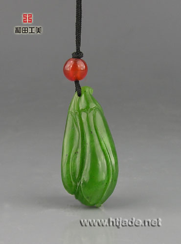 白菜,也是玉雕中最为常见的蔬菜之一。说到白菜,就不能不提到台湾故宫博物院的镇馆之宝——翠玉白菜。据说那棵翠玉白菜乃是光绪帝瑾妃的陪嫁之物。白菜寓意清白,象征着新娘的纯洁无瑕;趴伏其上的螽斯虫则象征着多产,祈愿新妇日后儿孙满堂。白菜,一直以来都是人们所钟爱的玉雕题材之一。白菜谐音为“佰财”、 “摆财”,有招财、聚财之意。此外,白菜还有“清白坚贞”等寓意,象征着两袖清风、品格清白。黄玉白菜造型优美,根茎、叶片雕琢精细、栩栩如生。顶部雕一螽斯虫,又有祈愿子孙众多,香火绵延之意。